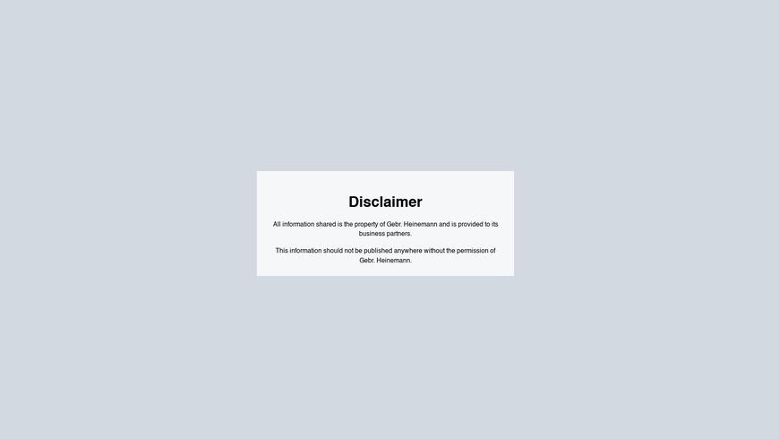 In addition, Gebr. Heinemann reserves the right to implement changes to the information provided. The content of this website is copyrighted. Any reproduction of information or data, in particular the use of texts, text parts or images, requires the prior written agreement of Gebr. Heinemann.